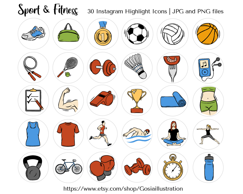 Grafiki dostępne są w różnych formatach (wszystko jest dokładnie opisane w ofertach). Są grafiki w wersjach wektorowych, jpg i png bez tła. Część oferty stanowią ikonki do relacji wyróżnionych na Instagramie – przygotowane w takich formatach, aby wrzucić je bezpośrednio na instagramowy profil (ewentualnie wcześniej spersonalizować je sobie dodają własne tło).