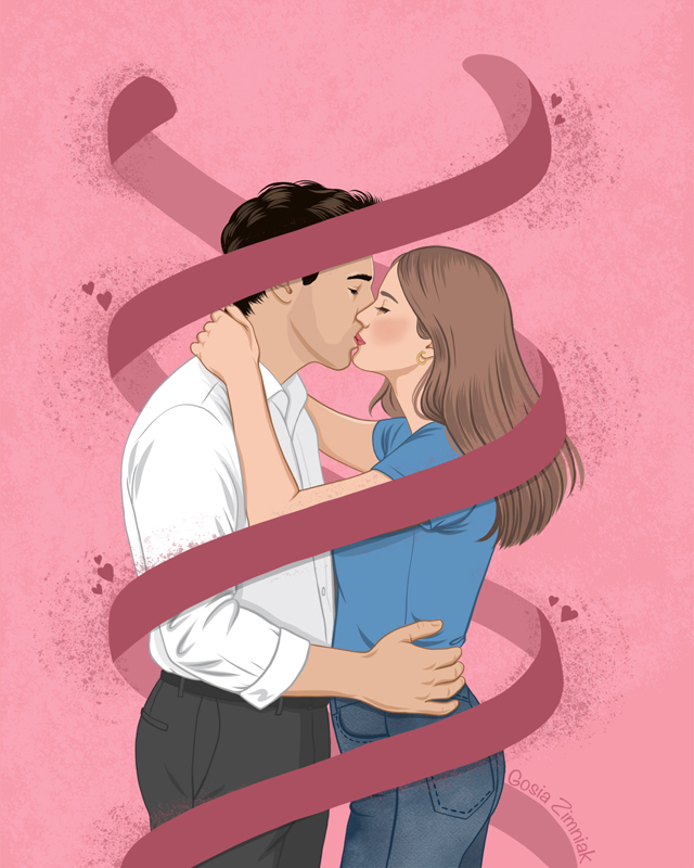 Ilustracja powstała jako fan art do historii łączącej romantyczny klimat z motywem dopasowywania ludzi na podstawie DNA. Skupiłam się na oddaniu atmosfery kawiarni, detali wnętrza i subtelnej dynamiki między bohaterami, budując scenę pełną ciepła i lekkości.