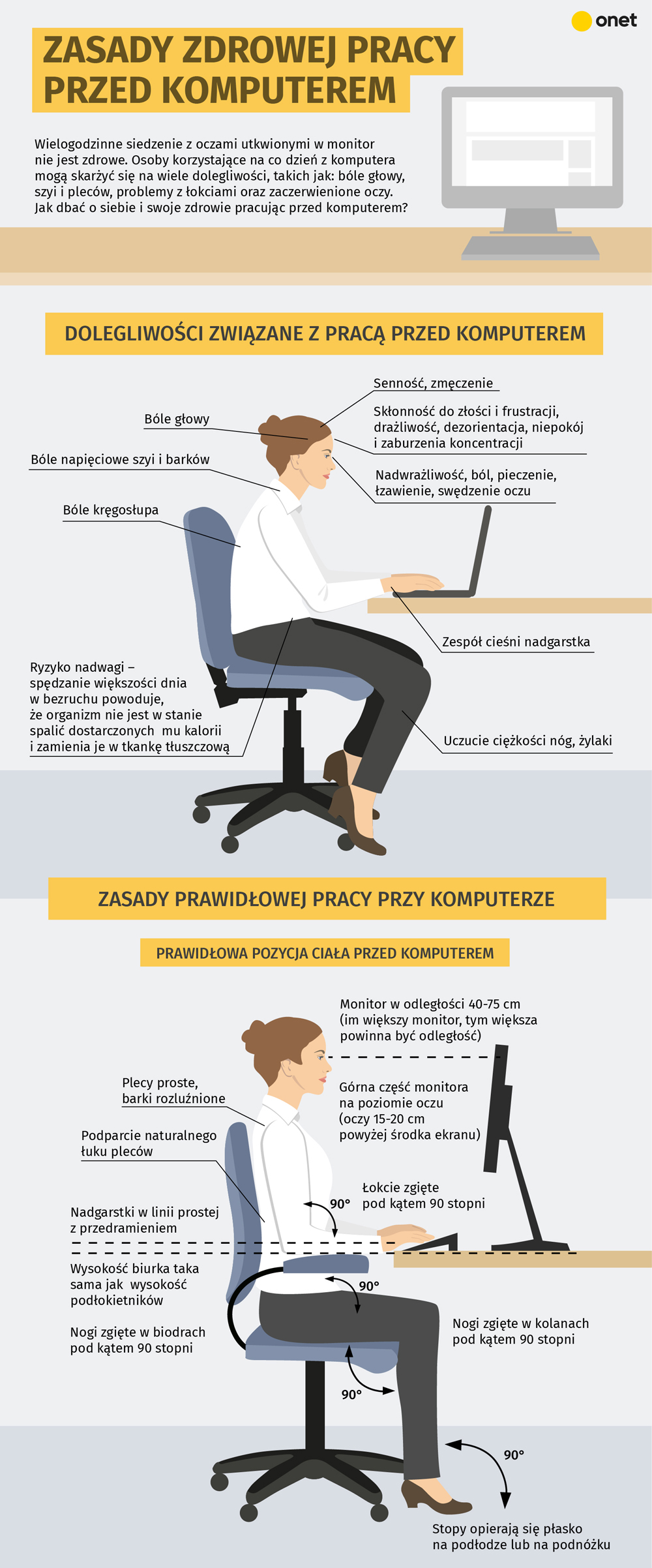 Infografika biurowa “Zasady zdrowej pracy przed komputerem” – wykonana dla Onetu