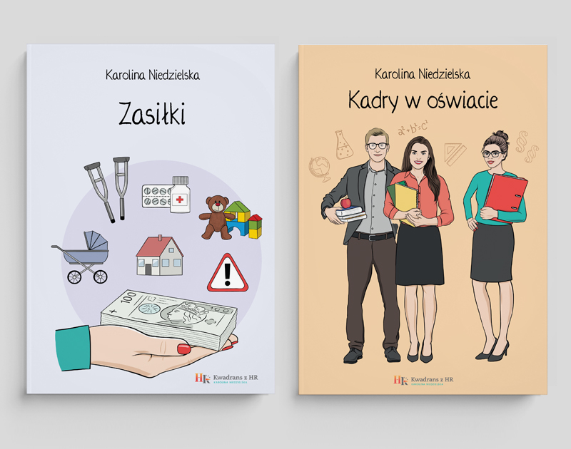 Seria książek poświęconych tematyce kadrowej i administracyjnej, dla których przygotowałam zarówno projekty okładek, jak i ilustracje do wnętrza publikacji.