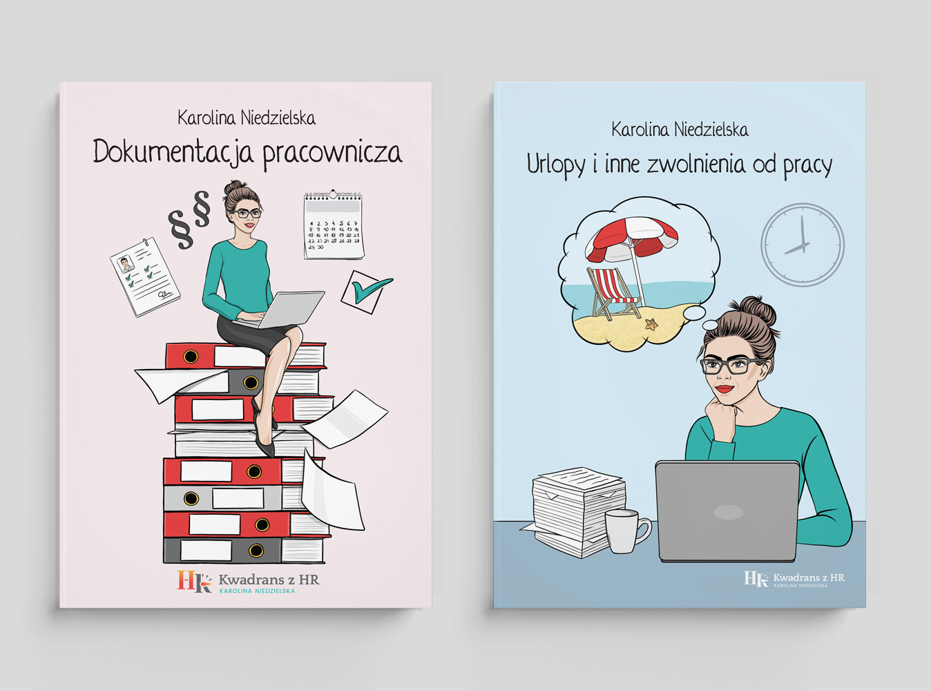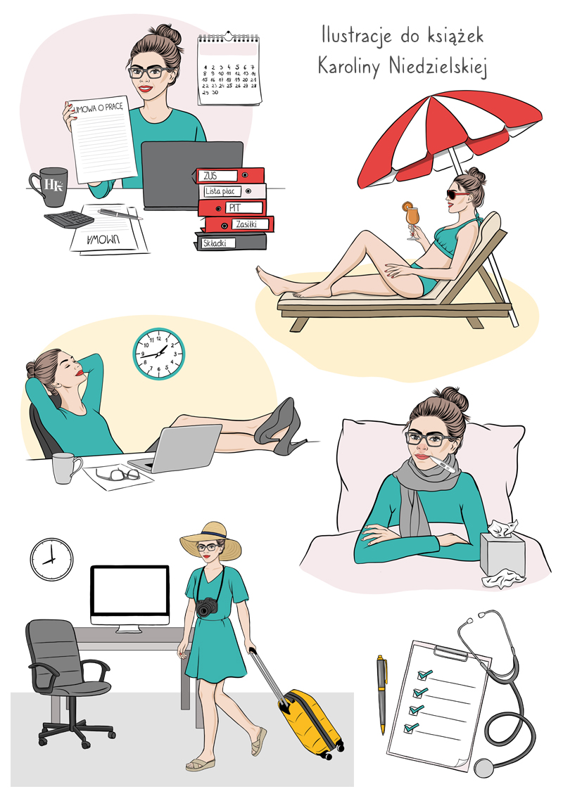 Choć tematyka związana z kadrami i przepisami prawa może wydawać się bardzo techniczna, założeniem projektu było nadanie publikacjom bardziej przystępnego i przyjaznego charakteru. Dzięki dużej swobodzie twórczej mogłam wprowadzić ilustracje „z przymrużeniem oka”, które przełamują formalny ton treści i dodają książkom lekkości.